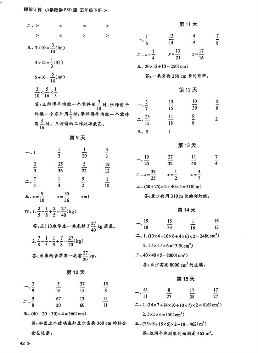 25春北师版五下数学睡前计算67天【答案】