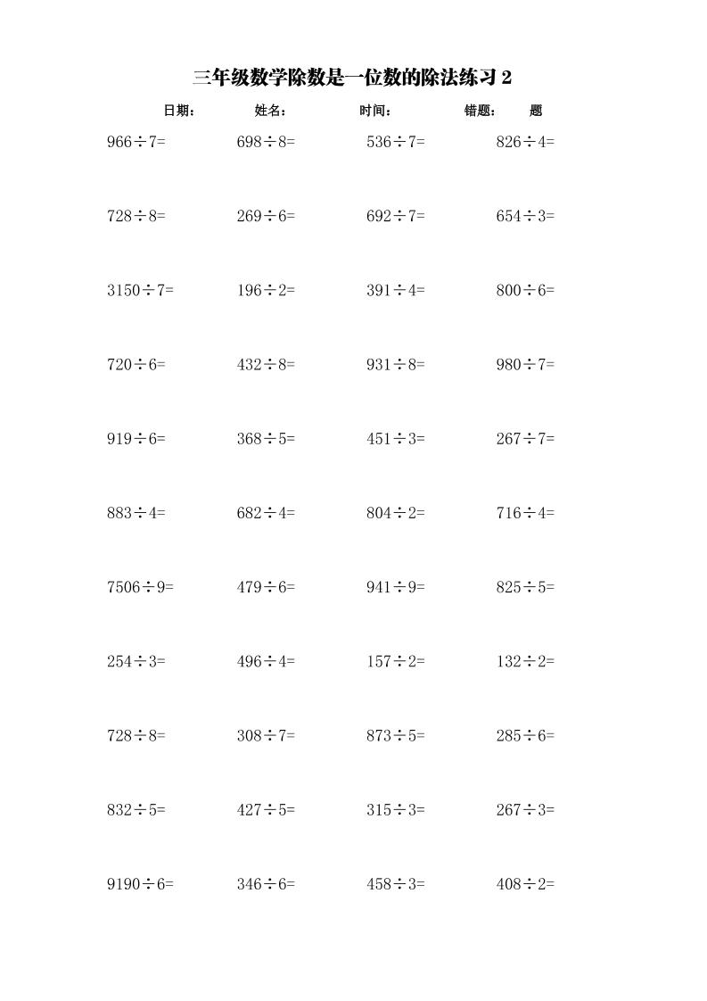 三年级下数学计算大作战加减乘除单位换算训练卡3000题