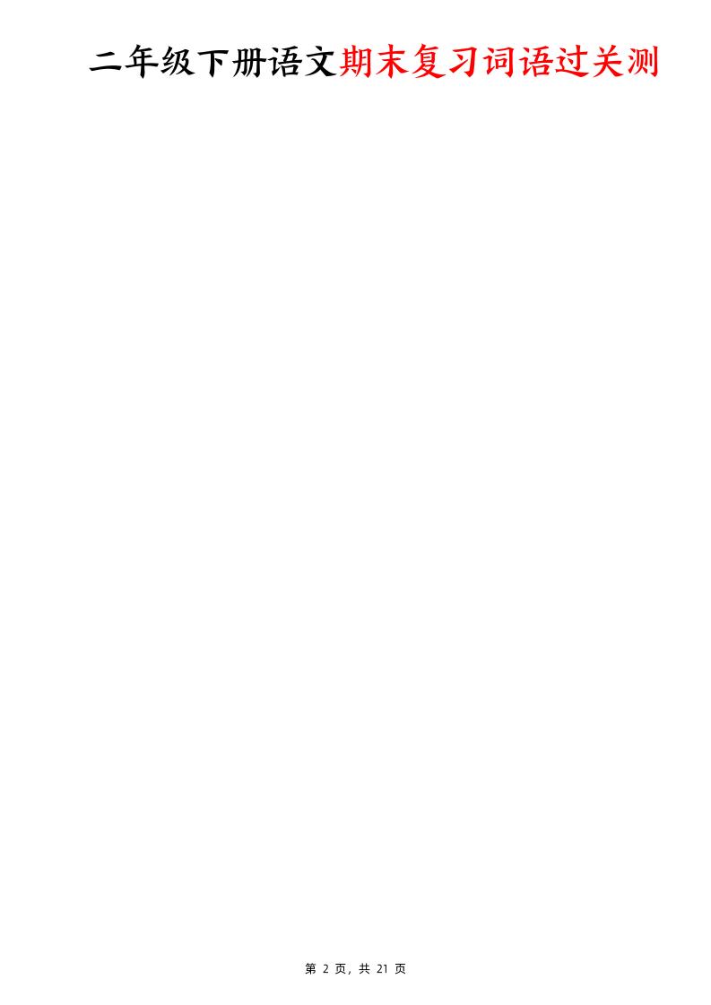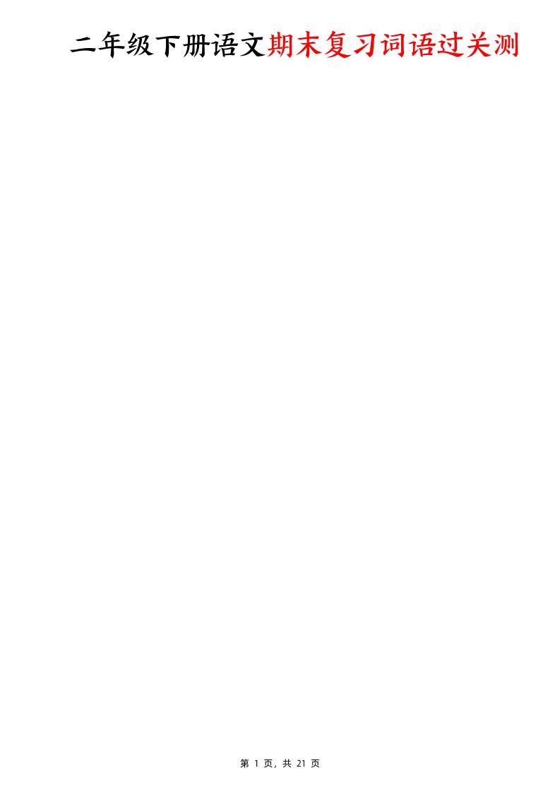 二下语文期末复习词语过关测(含答案21页)