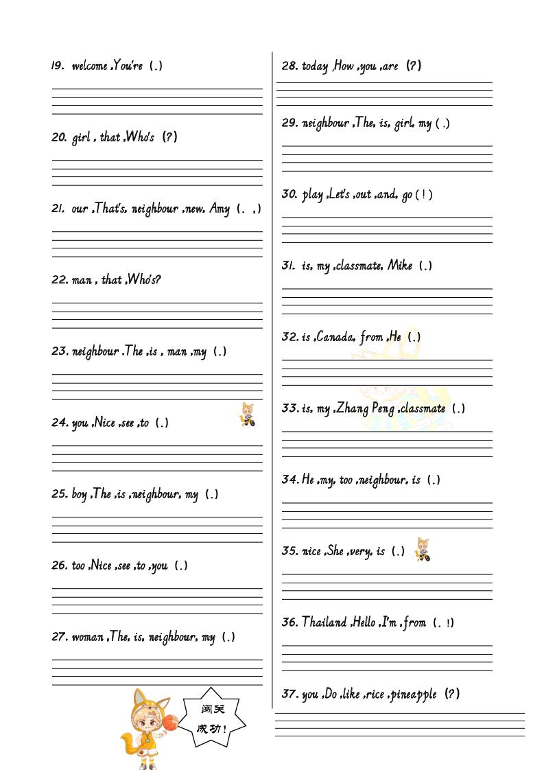三下人教PEP版英语U1-U6连词成句专项训练-12页-含答案