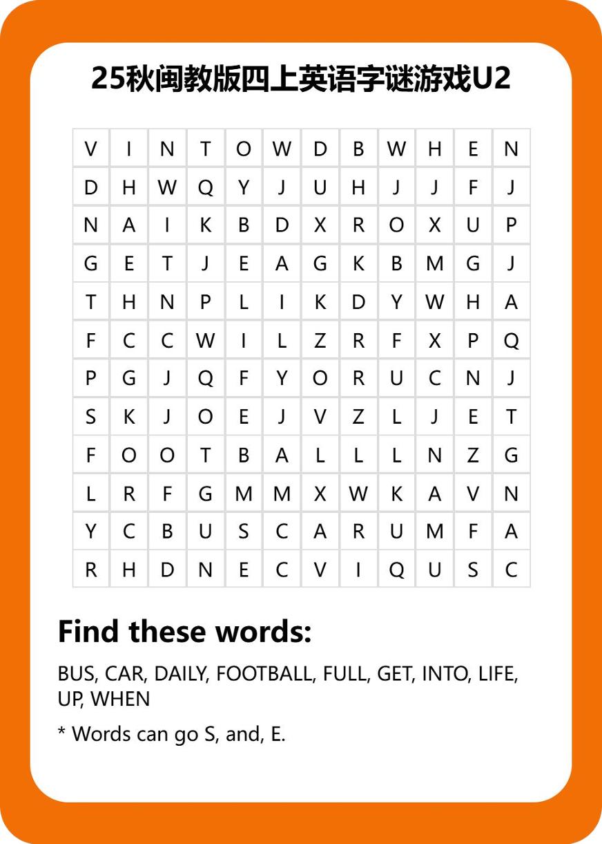 25秋闽教版四上英语字谜游戏U2