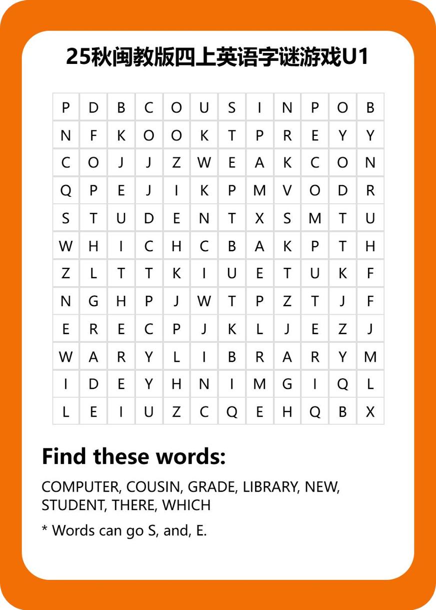 25秋闽教版四上英语字谜游戏U1