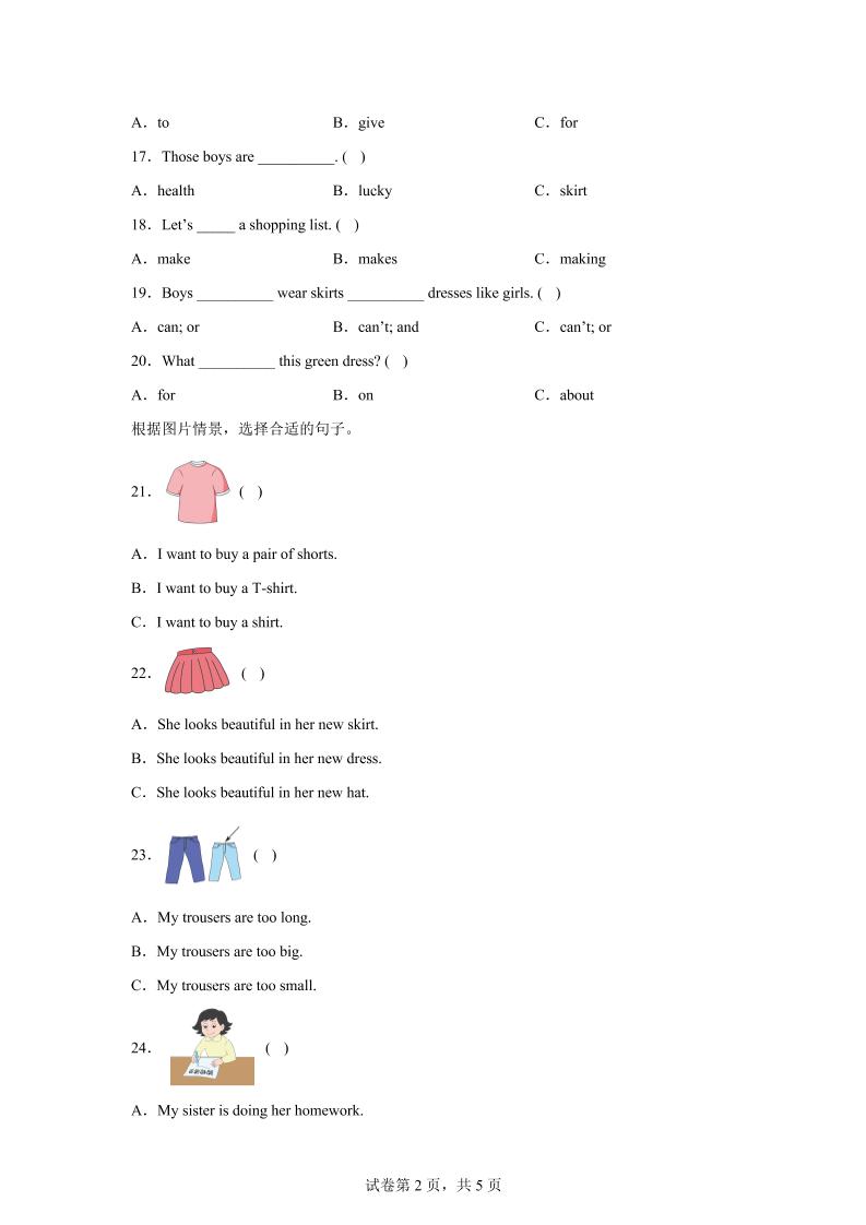 闽教版英语六年级上册Unit4PartB练习卷