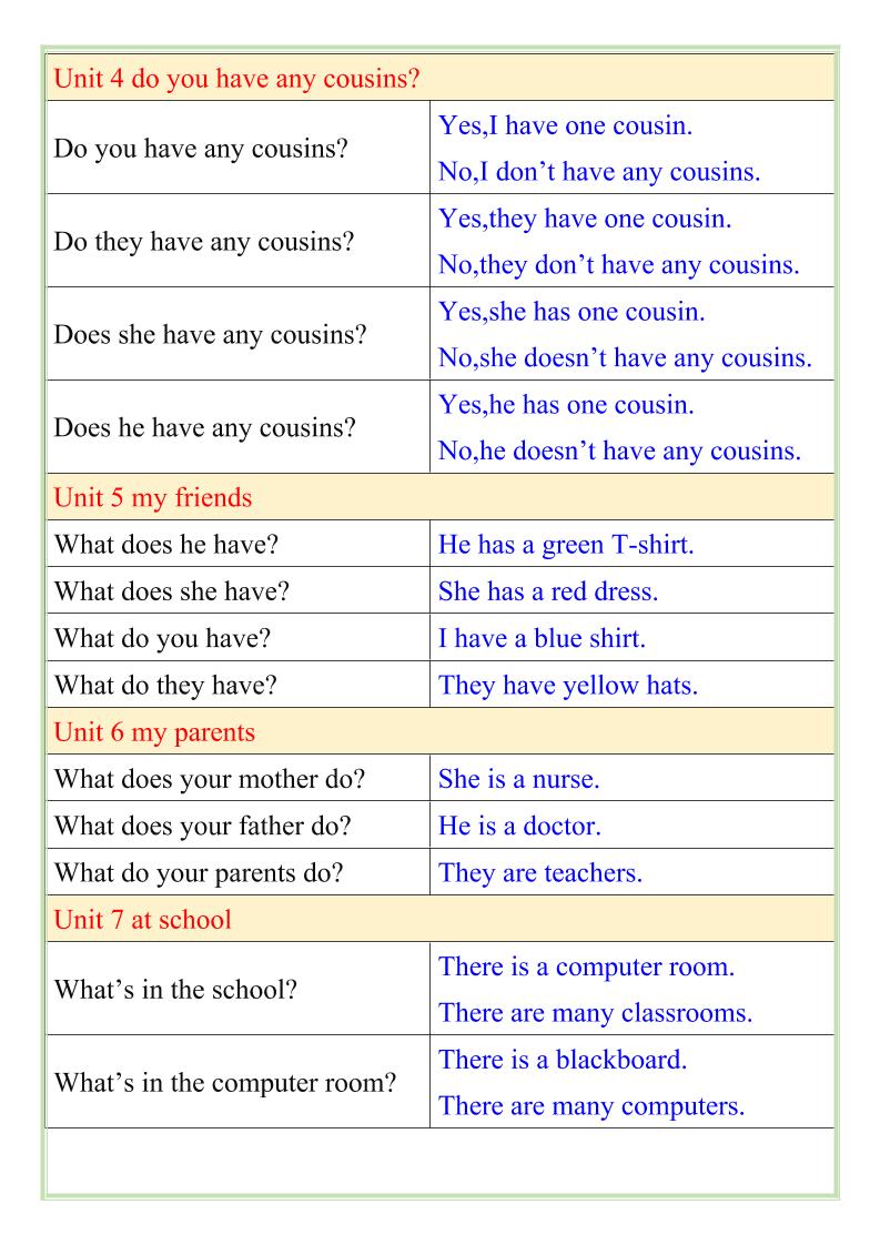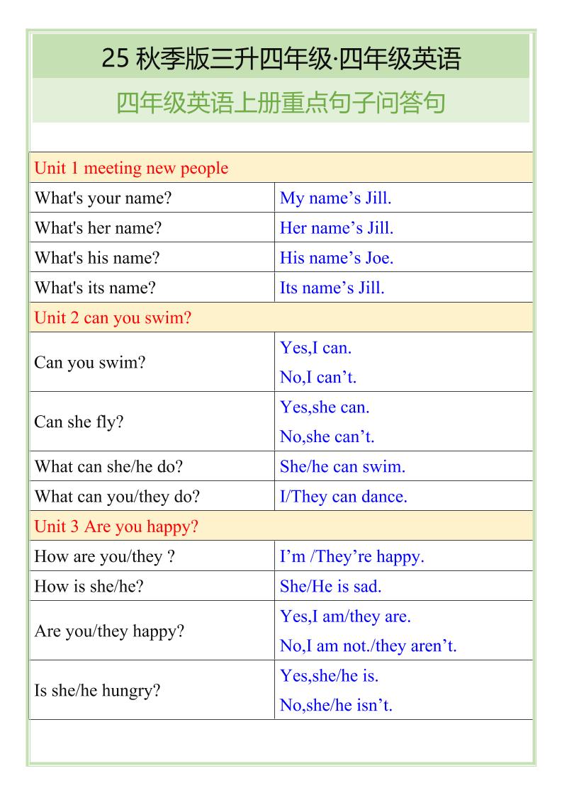 【2025秋新版】四年级英语上册重点句子问答句
