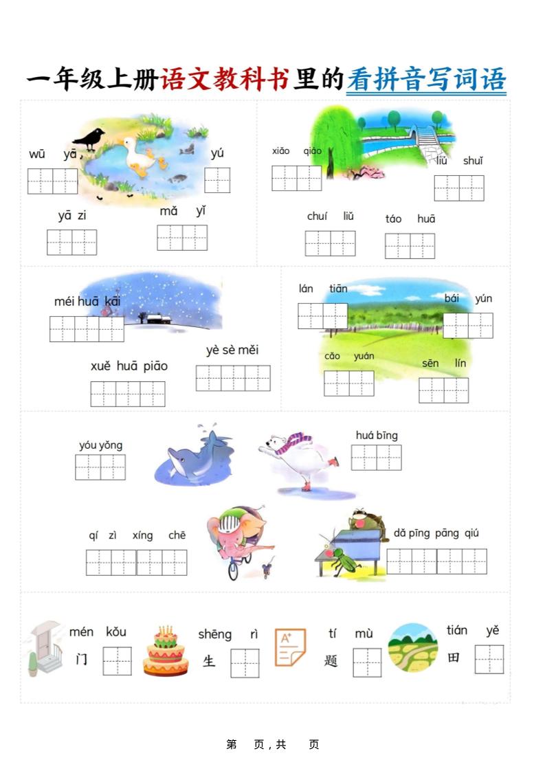 新一上语文教科书里的看拼音写词语(16页)