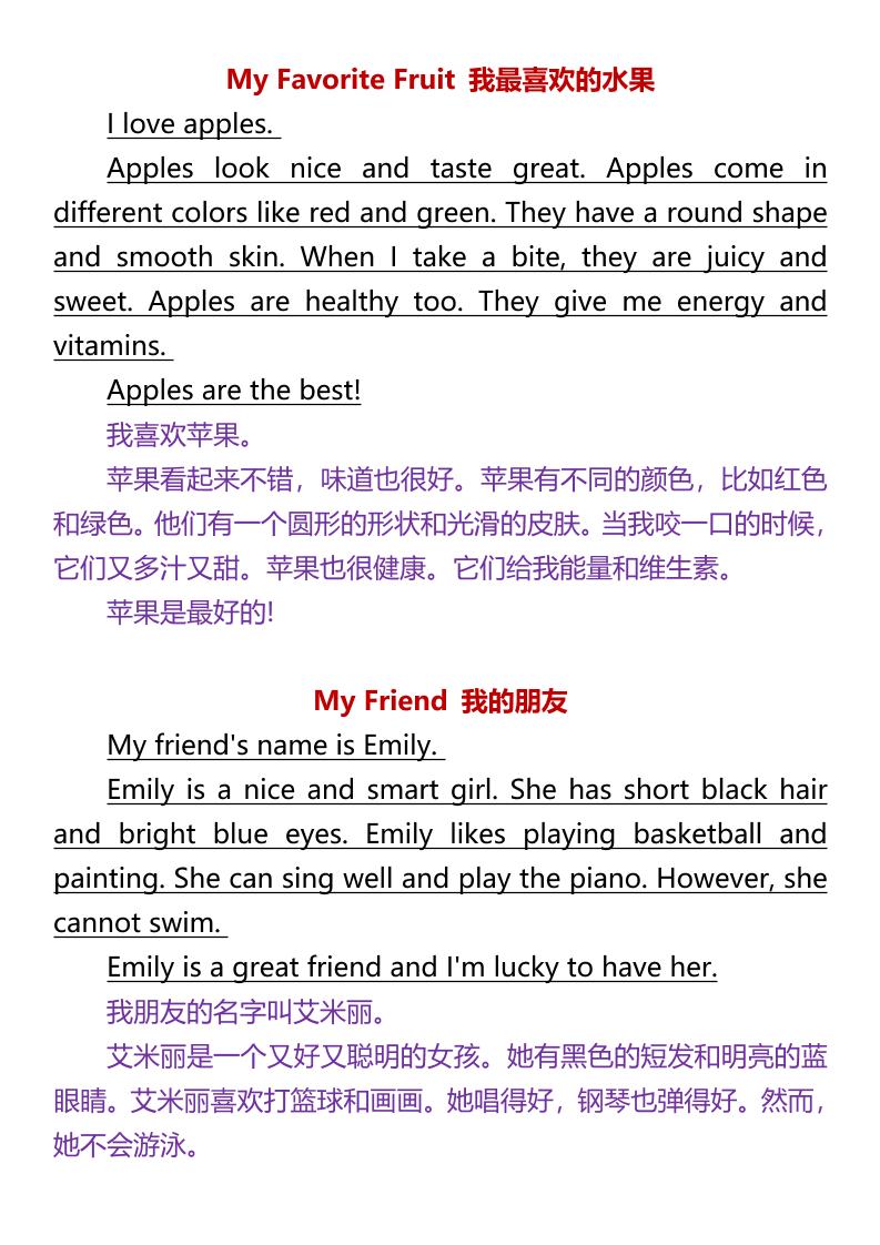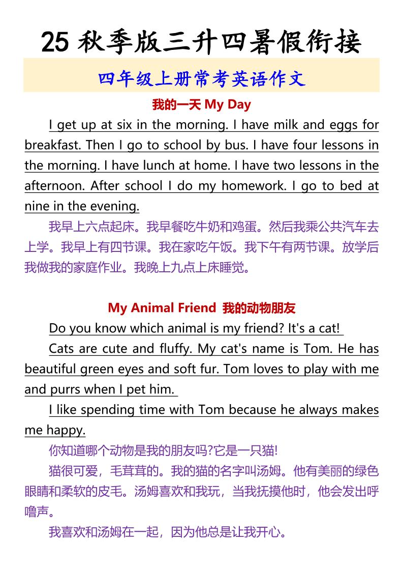 【2025秋新版】四年级上册常考英语作文
