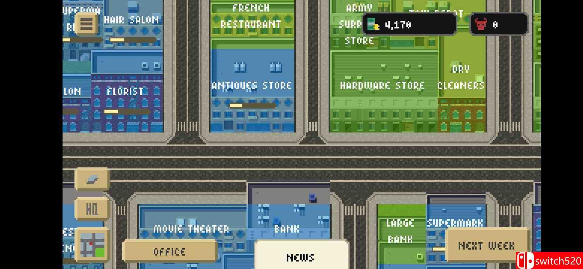 《像素黑帮:黑手党经理》是一款模拟经营类(SIM)游戏,《像素黑帮:黑手党经理》是一款黑帮主题的模拟经营游戏。你将建立自己的黑帮帝国——招募忠诚的帮派成员、升级武器与载具;策划抢劫、刺杀、敲诈保护费、收购物业并管理非法生意;潜入敌徒领地、行贿市长与警察局长、逃避诉讼并最终消灭对手、统治整座城市。switch520
