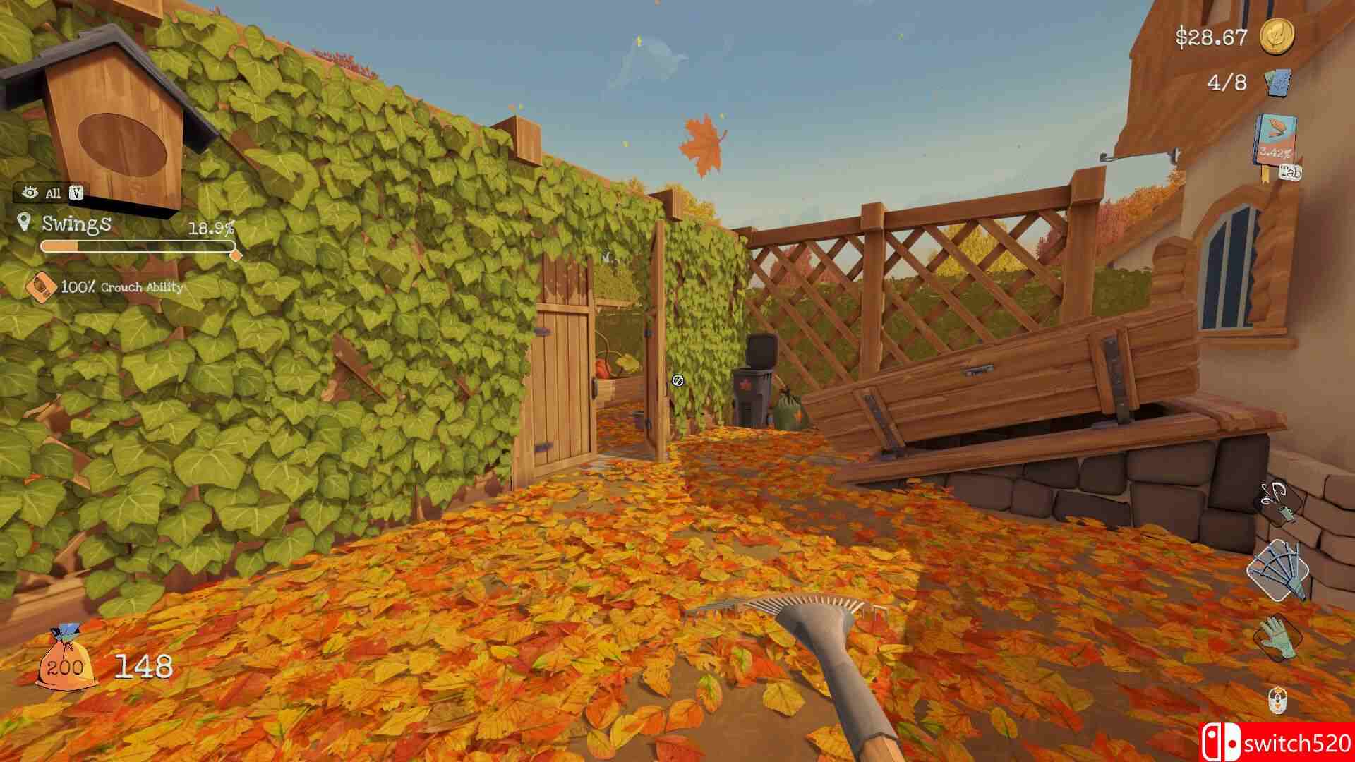 《别管落叶》是一款动作冒险类(ACT)游戏,《别管落叶》是一款休闲模拟游戏。在游戏中,落叶已经堆积太久,它们不会自己消失。玩家需要穿上手套或使用工具,在庭院中清理落叶。通过耙子、叶吹机等工具收集落叶,积累资源然后升级工具,恢复院子的整洁。switch520