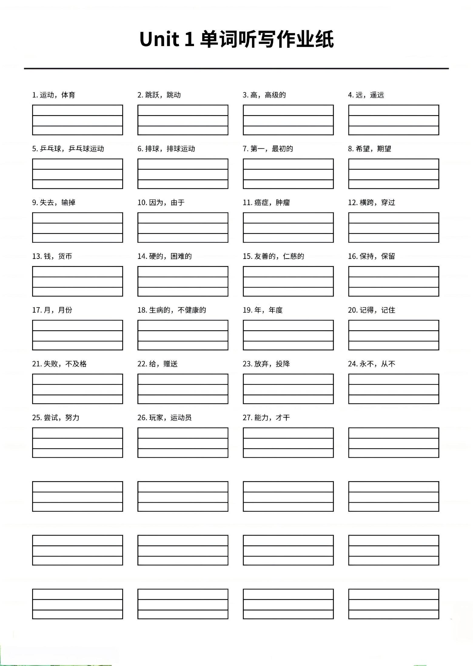 四年级上英语1-6单元单词听写作业纸《外研版》