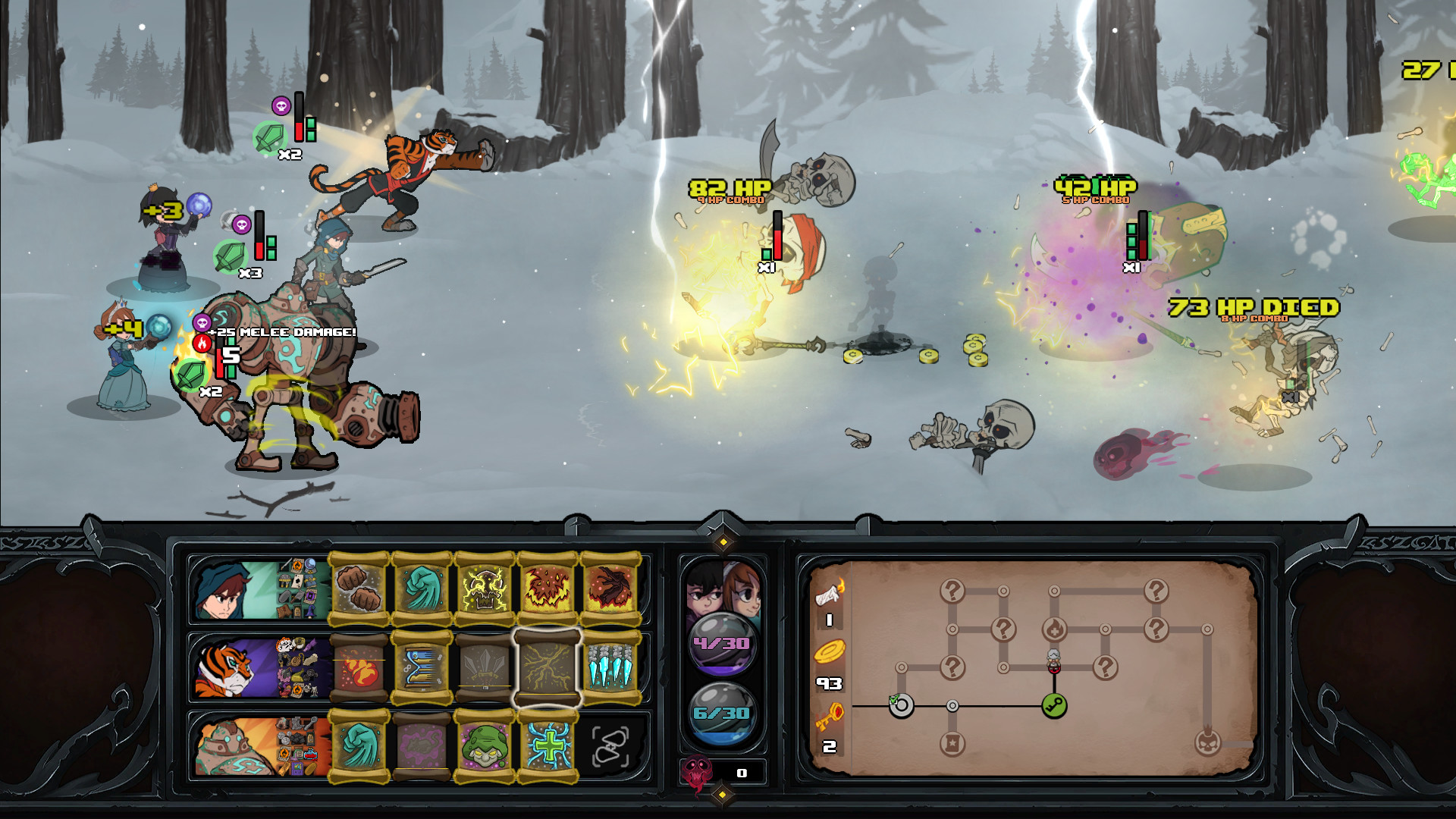 《过气英雄 Has-Been Heroes》Switch中文版NSP下载 – 含1.1.1补丁,这是一款融合了回合制策略、卡牌管理与轻度 rogue-lite 元素的独特角色扮演游戏。玩家需同时操控三位能力迥异的英雄,在一条横向战线上对抗成群的敌人。核心战斗围绕精密的“攻击点数”分配与“耐力击破”系统展开,并辅以丰富的法术卡牌。
